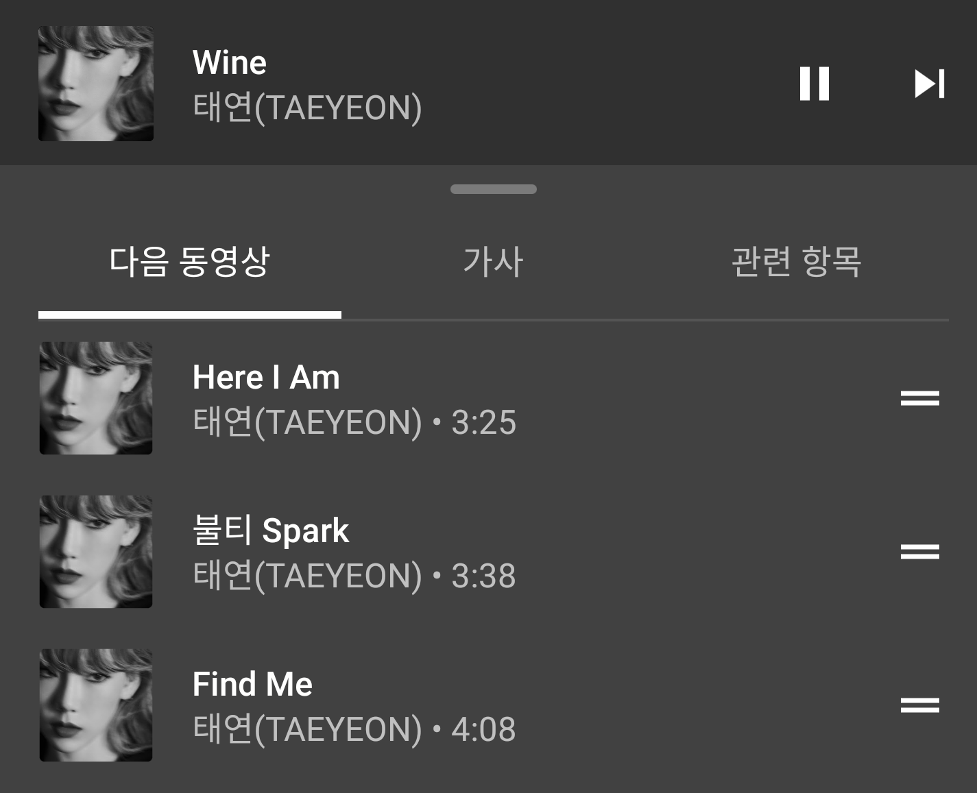 유튜브와 유튜브 뮤직이 호환이 된다는 것은 정말 큰 장점이지요.